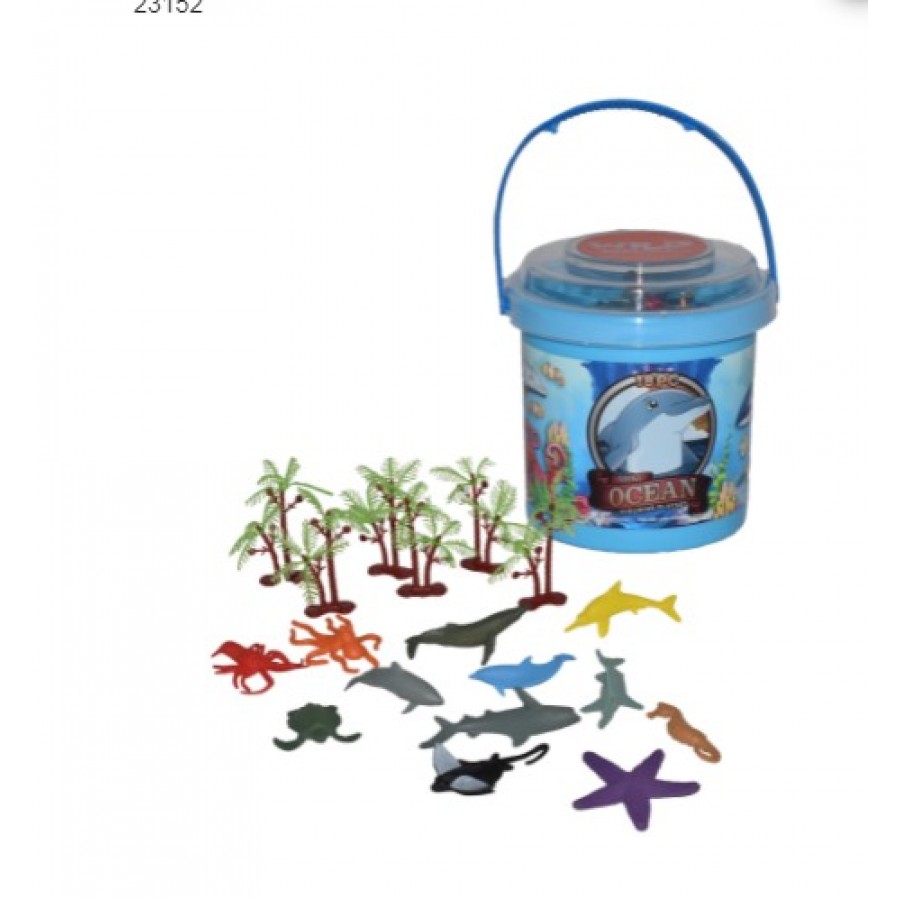 The Mini version of the ocean themed playset. Stored in a bucket with a resealable lid for easy storage.